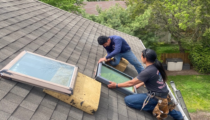 Our team will first inspect your skylight and find out the actual issue going on with your skylight. Once we confirm the issue we will give you a free estimate. Jamie roofing skylight inspection service NJ. If the skylight leak is at the roof flashing, it may be possible to make temporary repairs using roof flashing cement around the perimeter of the unit. However, proper repairs will require removing shingles near the skylight, installing appropriate flashing, and reinstalling new shingles in the area. Most skylights have integrated flashing or a special flashing kit that is specifically designed for the skylight and roofing material.
